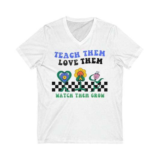 Teach Them, Love Them, Watch Them Grow - Unisex Jersey Short Sleeve V-Neck Tee