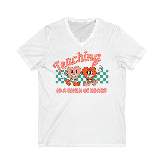 Teaching is a Work of Heart - Unisex Jersey Short Sleeve V-Neck Tee