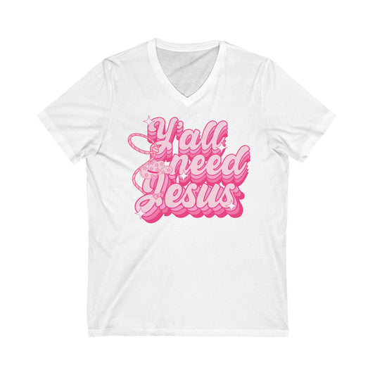 Y’all Need Jesus - Unisex Jersey Short Sleeve V-Neck Tee